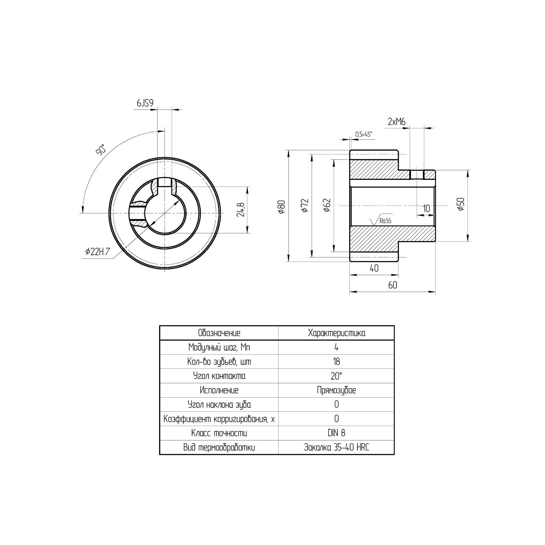 - угол профиля зуба: 20°;