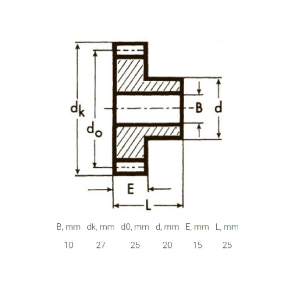 | B, мм | dk, мм | d0, мм | d, мм | E, мм | L, мм |